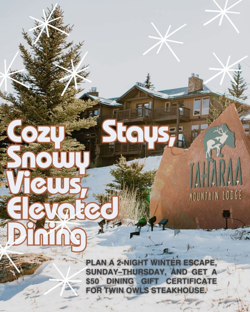 • Pair Your Stay + Dining: Book a 2-night stay (Sunday through Thursday) and receive a $50 gift certificate for Twin Owls Steakhouse—perfect for cozy, fireside dining after a day of exploring.
